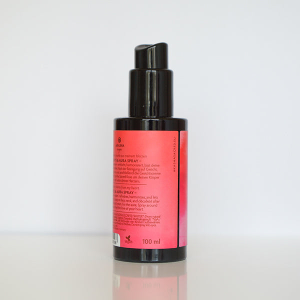 Nach der Reinigung auf Gesicht, Hals und Dekolleté sprühen. Nimm dir einen Moment, den Duft bewusst wahrzunehmen. Auf die so angefeuchtete Haut klopfe nun sanft unser Serum Amrita Glow ein (energetisierend und verfeinernd mit Augentrost, Aloe Vera, Karottensaft und Milch von glücklichen Ziegen). Anschließend kannst du deine Akasha Sacred Lieblingscreme auftragen: Ist es die Devi Rose Rosencreme? Oder unsere Königinnencreme Green Jade?